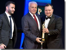 ((Mr. Maalouf receiving the award from Mr. Mohamad Halwani, President of the BGA Association and media personality Mr. Alain Dergham)