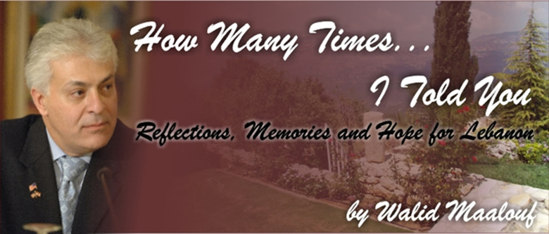 "How Many Times... I Told you tells the stories of a young ambitious Lebanese American and his ongoing struggle to regain the old good days of Lebanon. While reading it you cannot but bow before this pure patriotism. Walid Maalouf is indeed a modern day Phoenician sailor in the Americas." Mazen H. Abboud, Journalist, Beirut, Lebanon - December 6, 2007