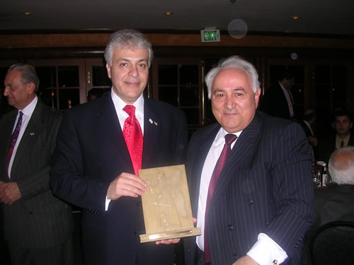 Walid Maalouf receiving a souvenir from Ninoos Benjamin, President of the Assyrian Universal Alliance