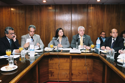 Speaking at the Ahram Regional Center and at left Dr. Howayda Mostafa