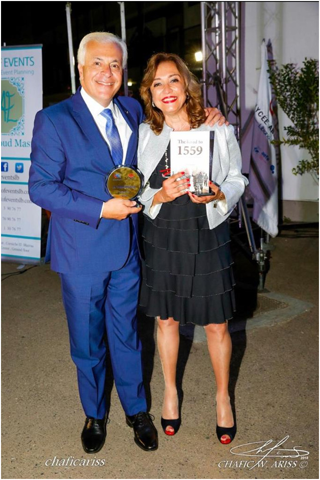 Receiving the Lycée Award from Ms. Salwa Baassiri, Hana Samak and Daniel Pestourie