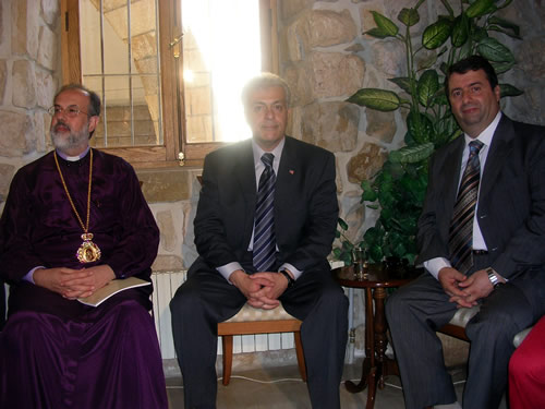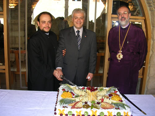 Deputy Camille Maalouf and Archbishop Haddad at the Maalouf family welcome ceremony