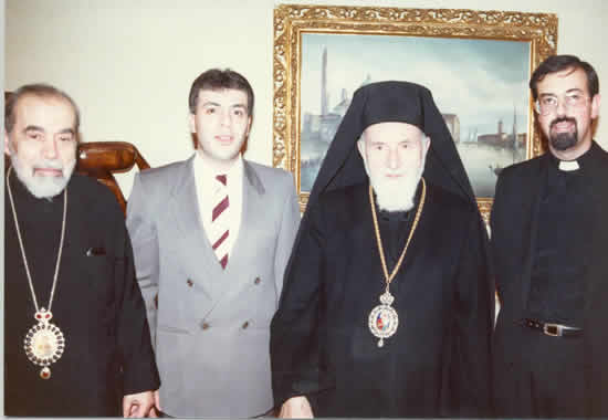 From Left: Late Archbishop Tawil, Walid Maalouf, Late Patriarch Maximos V Hakim and Father George Haddad