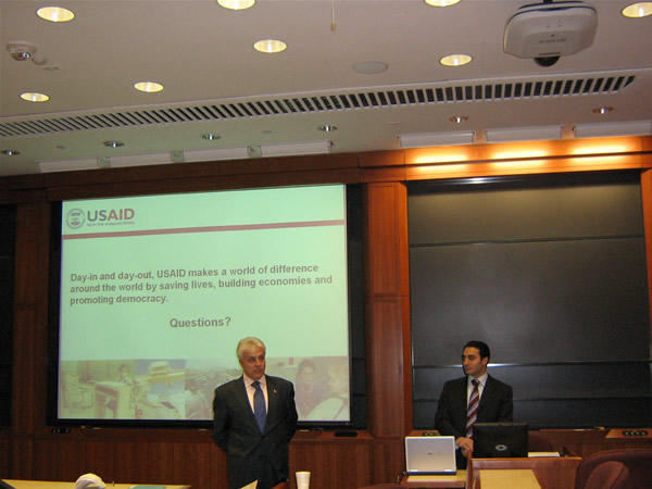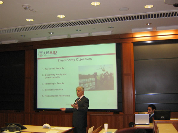 Walid Maalouf speaking before the students at Aldrich 108 in Harvard and organizer of the event Mr. Firas Abi-Nassif