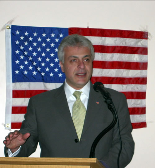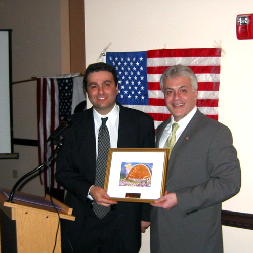 Walid Maalouf receiving a souvenir from Toufic Moubarak, President of Boston WLCU Chapter