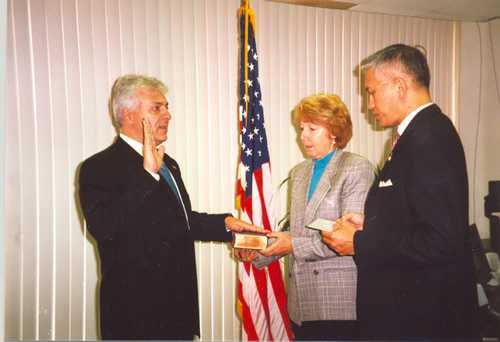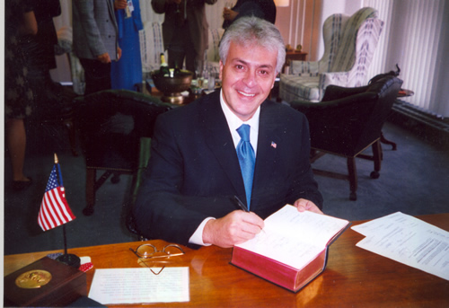Walid Maalouf signing his credentials after being sworn in as U.S. Alternate